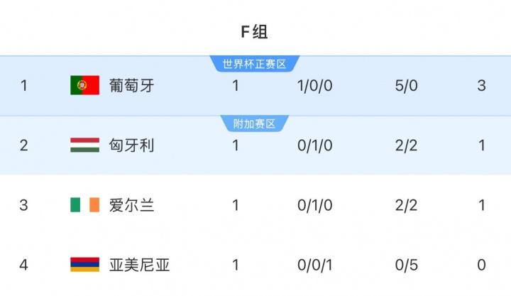 Vòng loại thế giới ở châu Âu, nhóm F còn 5 trận và đối thủ của Bồ Đào Nha trong cùng một nhóm bao gồm Hungary, Ireland và Armenia.